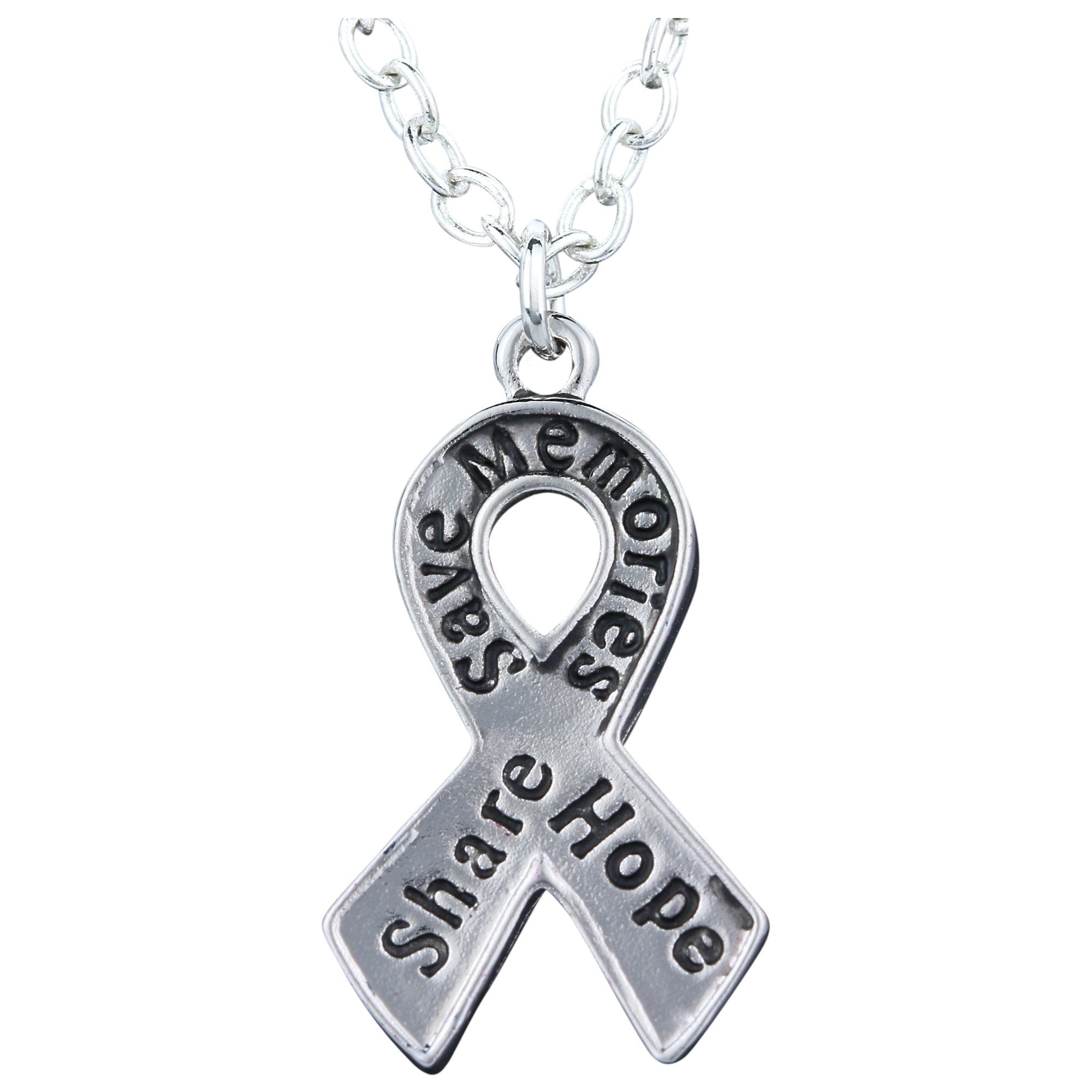 Fashionable meets meaningful! Purple crystals give this silver-tone Alzheimer’s Awareness ribbon a glittery flourish, as the reverse side carries an essential message of inspiration: “Save Memories Share Hope‚Ñ¢.” Our necklace is designed exclusively for The Alzheimer’s Site.