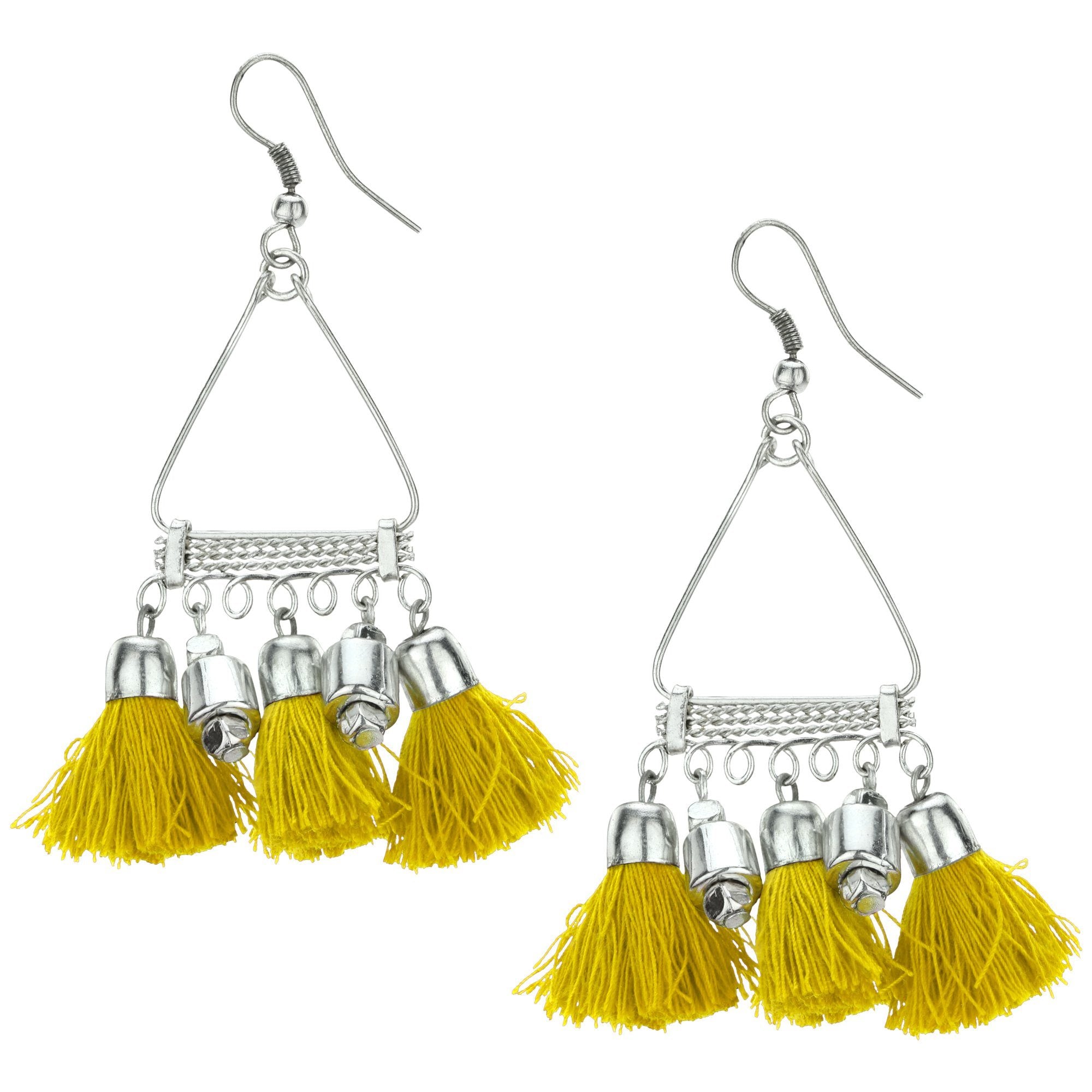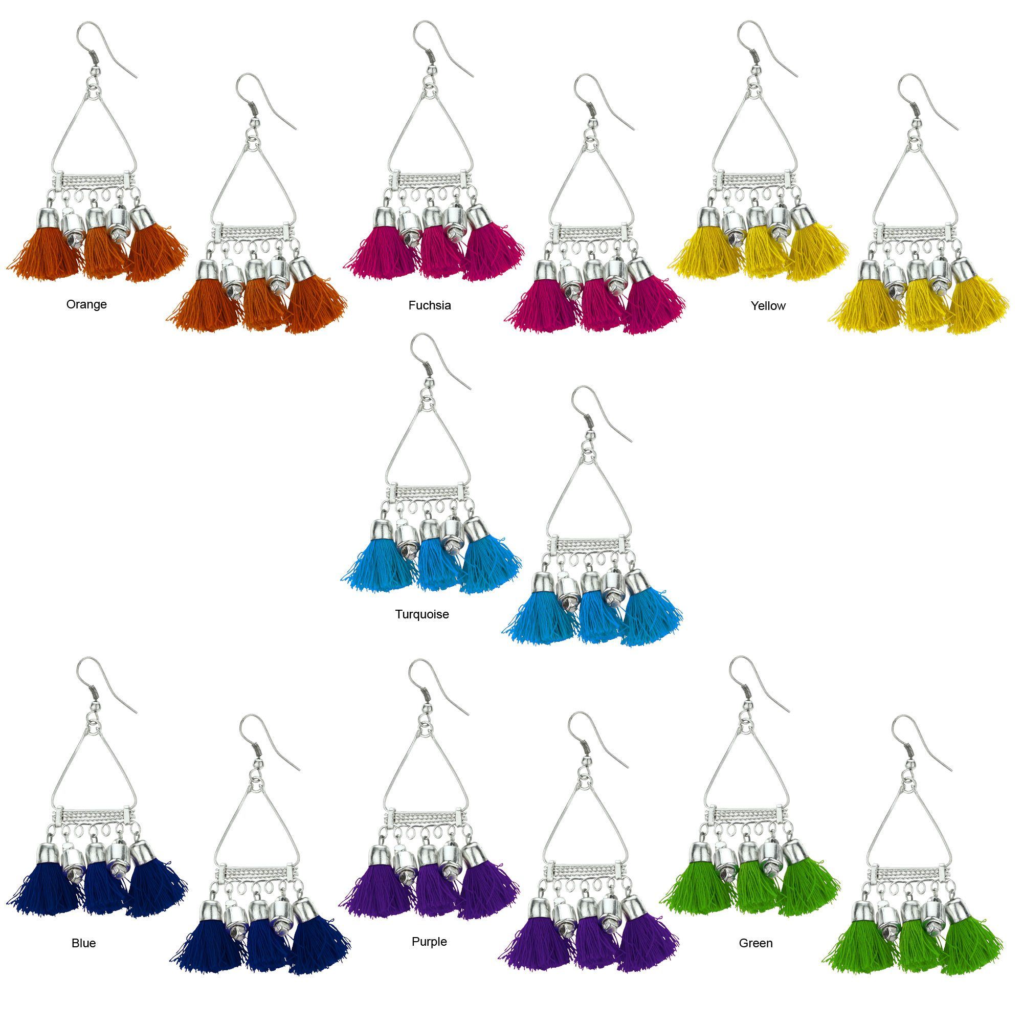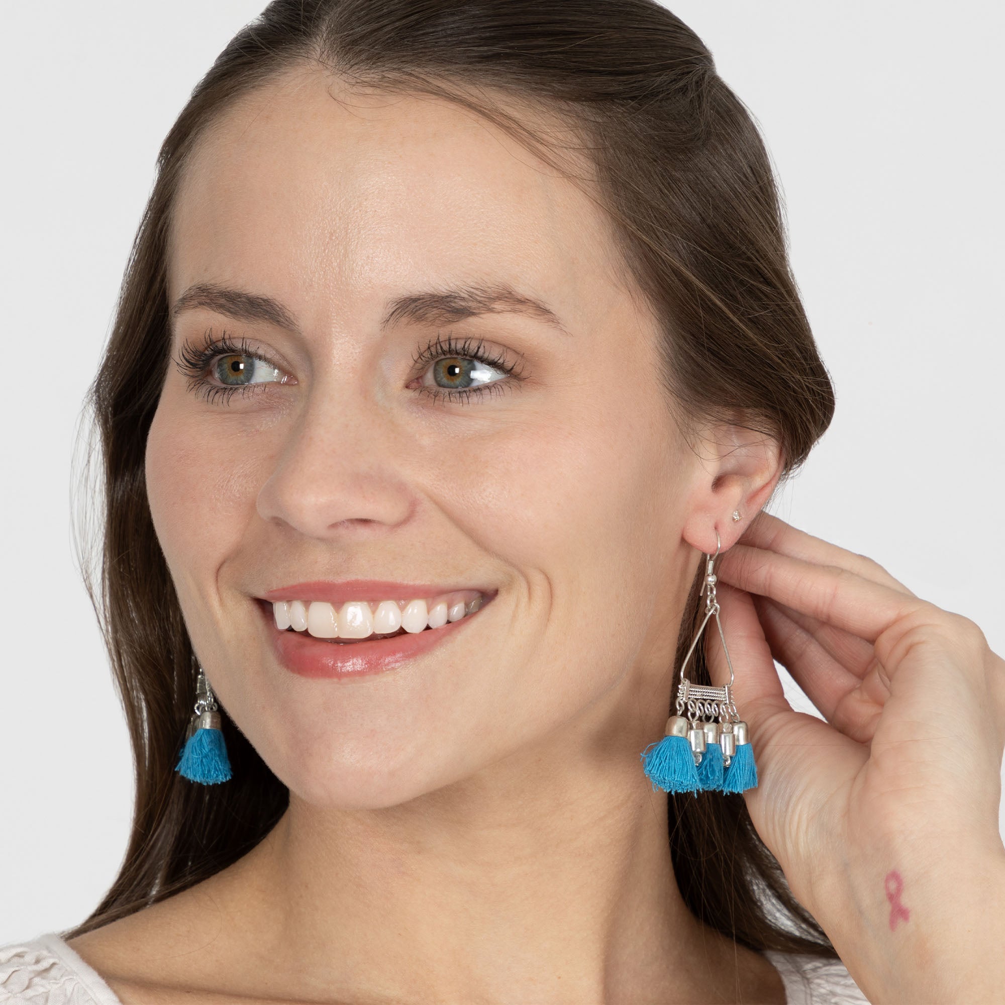 A bohemian style bursting with bright colors! This earring set is hand crafted by the skilled female jewelry artisans at Community Friendly Movement in a village just outside of Delhi, India.