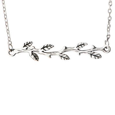 - A silver-tone horizontal branch pendant