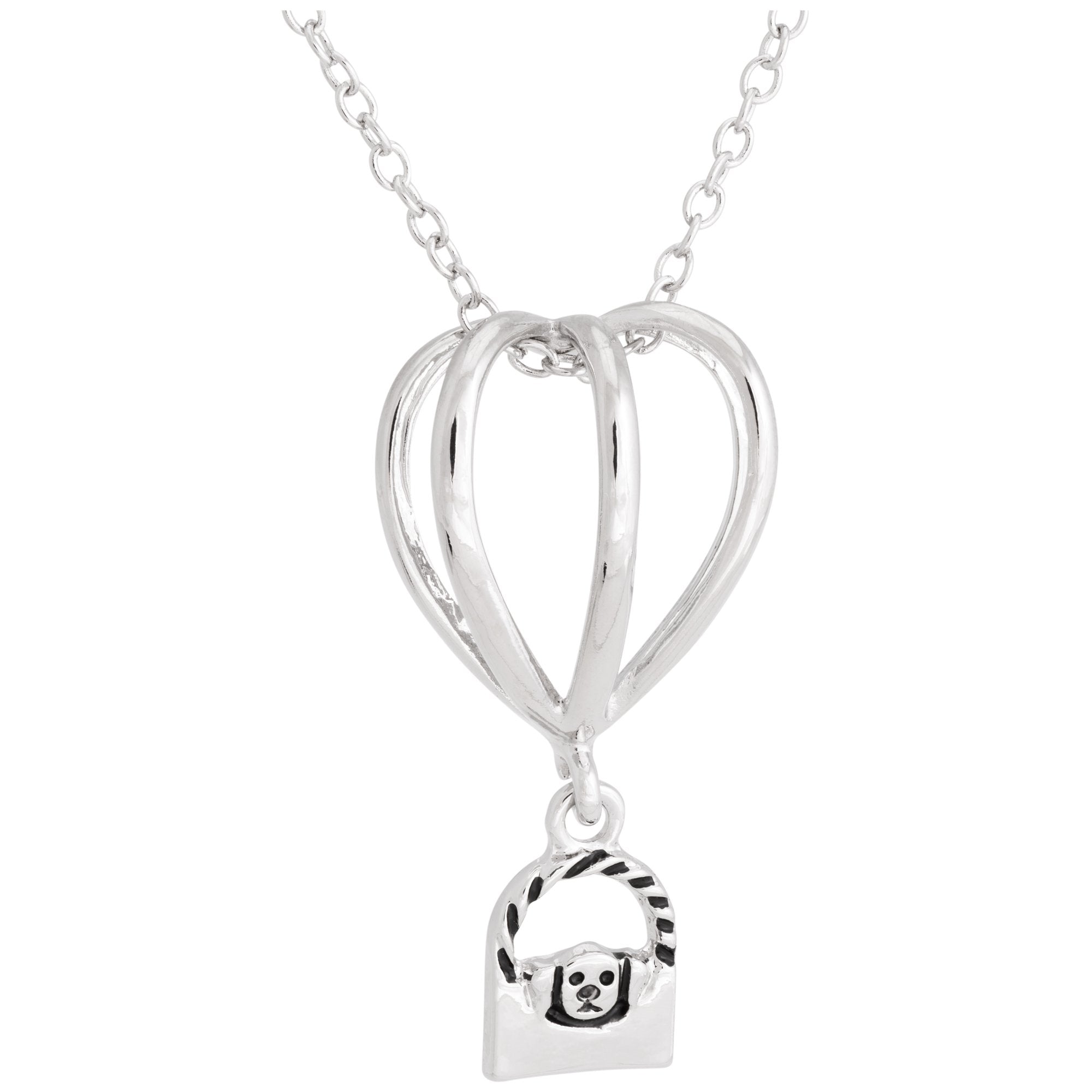 Floating on a silver-tone chain, this hot air balloon pendant is a sweet way to carry your furry friend with you wherever you go! Floating in the basket below is a whiskered kitty or floppy eared pup, showing your animal-loving spirit in a shining silver-tone design.