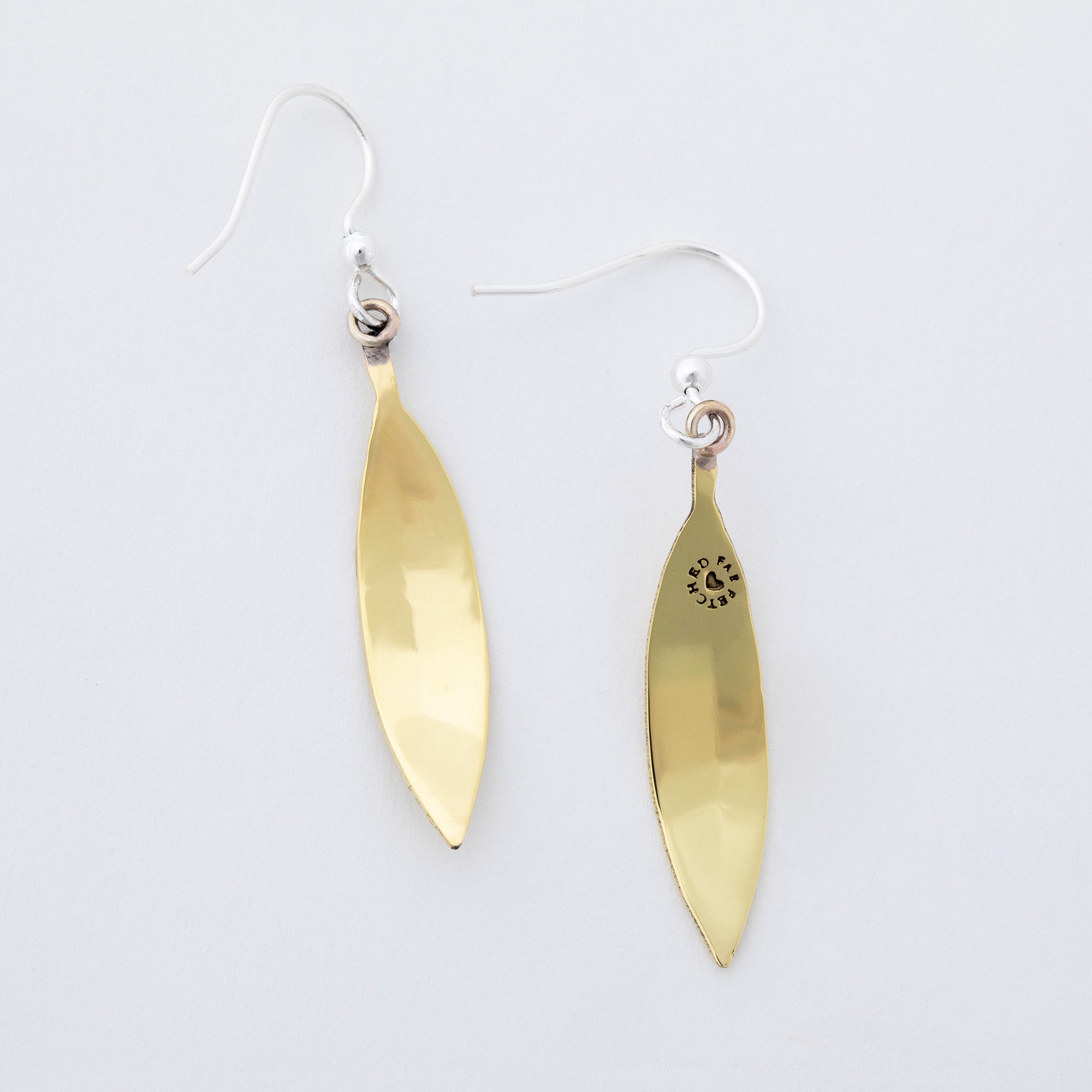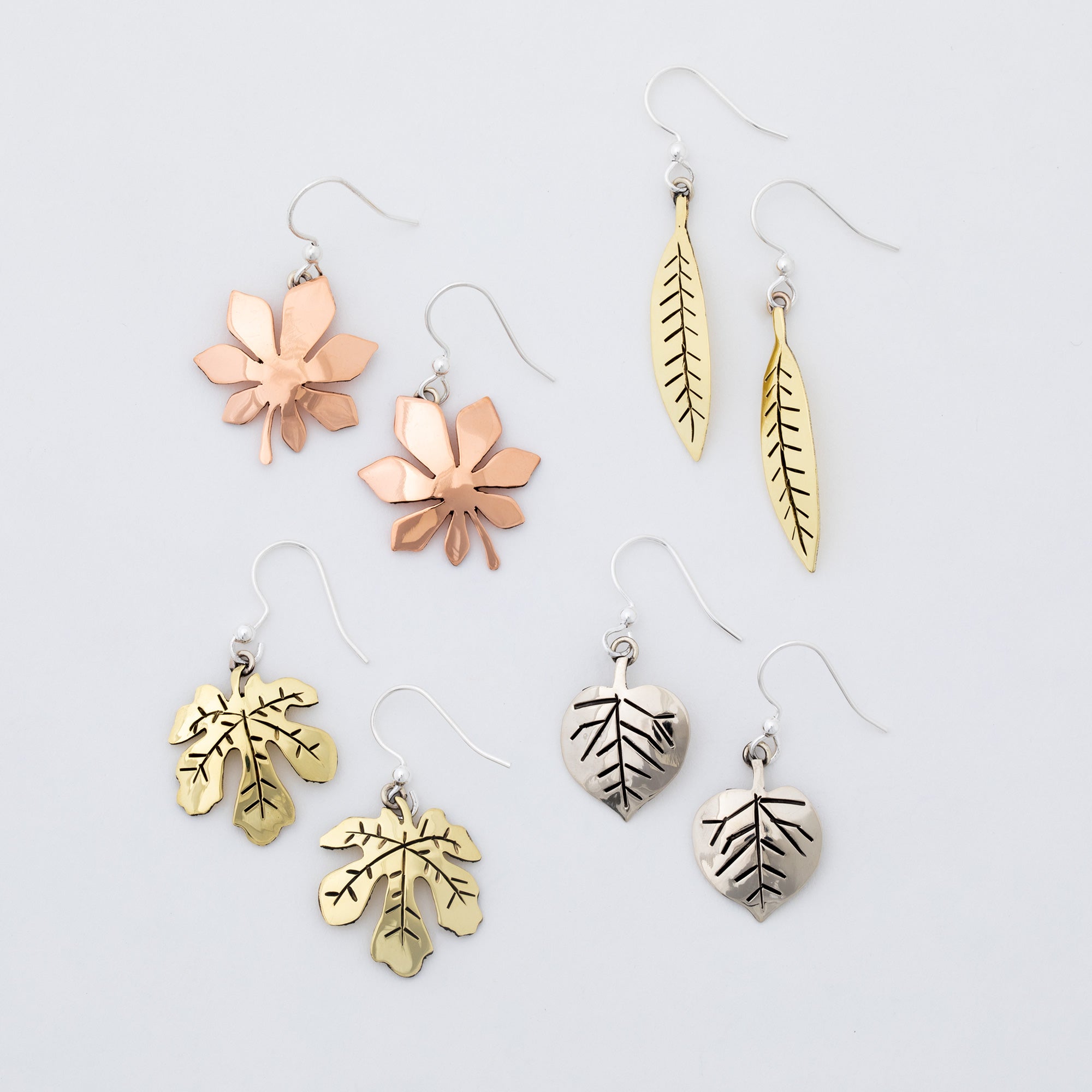 Crafted from mixed metals — brass, alpaca silver, or copper — each pair of dangle leaf earrings perfectly portrays an array of gorgeous natural foliage. Made with textured details that are handcrafted by the artisans of Far Fetched who create them, each pair is an homage to the natural beauty all around us!