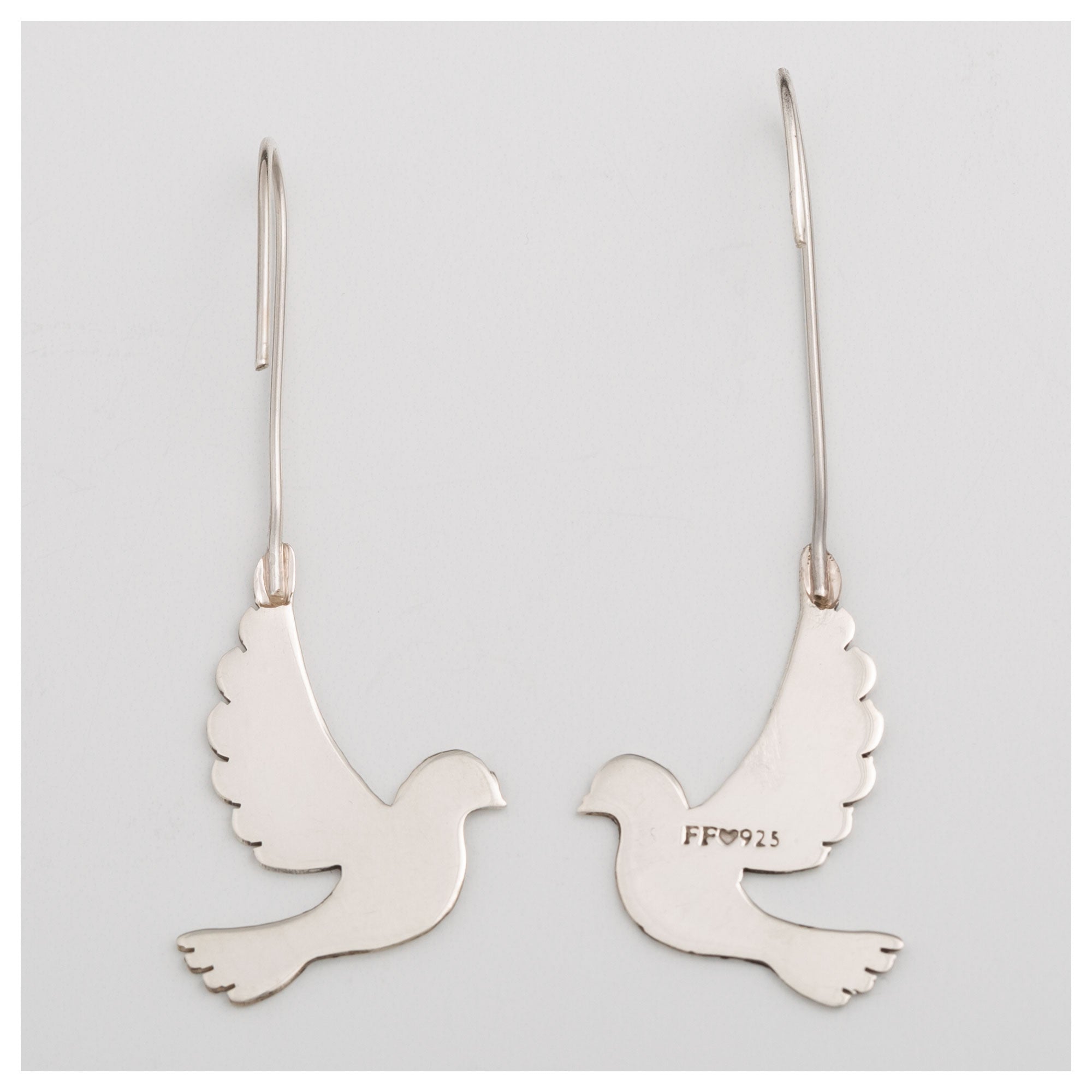 Two dove silhouettes are handcrafted in sterling silver for a gorgeous accessory you can wear day or night! Boasting a brilliant but minimalist design that offers a symbol of peace wherever you go.